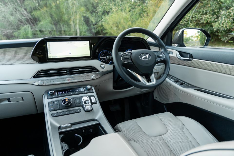 It’s down slightly on torque compared to the turbo-diesel engine in the Palisade, but you wouldn’t know it day-to-day. There’s just a hint of turbo lag off the mark, but once the turbocharger is singing it feels rapid for such a big car.