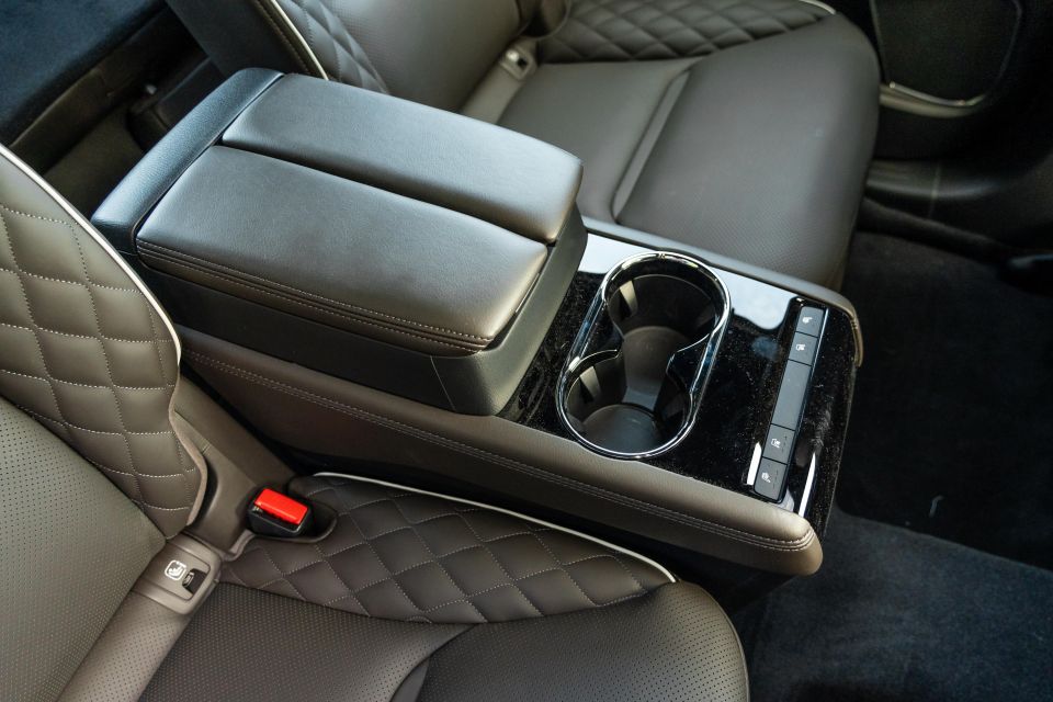 The second row is where the fun really starts in the Azami LE. Forget a three-seat bench, that’s far too common. Instead, it gets two individual captain’s chairs with heating and cooling, along with their own centre console.