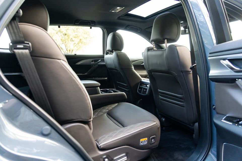 As for the third row? Passengers get USB ports and air vents, but the CX-9 can’t match the Palisade for legroom, nor is the bench as broad.