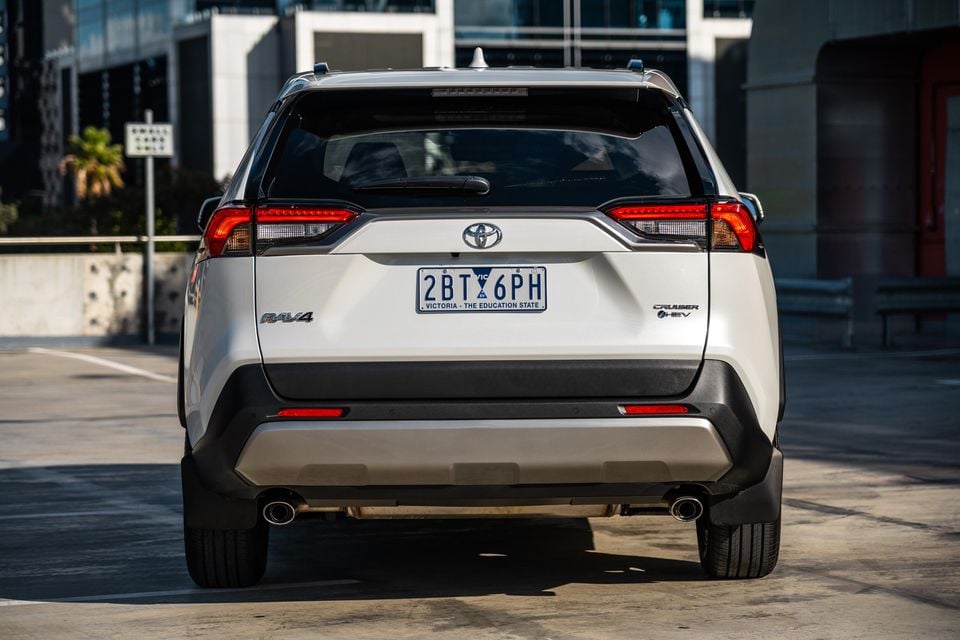 In the case of the RAV4, it’s a 2.5-litre four-cylinder petrol engine, boosted by an 88kW electric motor and matched with a continuously-variable automatic transmission. It’s primarily front-wheel drive, but there is an on-demand 40kW motor to drive the rear wheels when required – not that it’s remotely a serious off-roader.