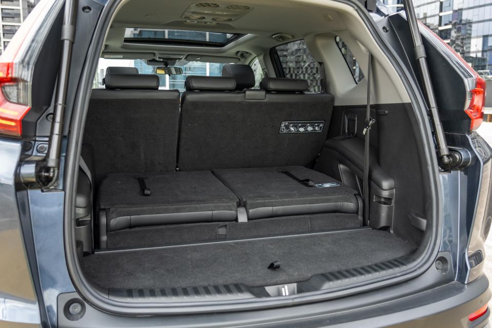 The amount of storage Honda has managed to fit into the CR-V’s body is impressive. The centre console is home to a massive bin (big enough for a handbag or laptop), and the sliding cover is actually an L-shaped tray for your wallet or phone. It’s a clever touch none of its rivals can match.