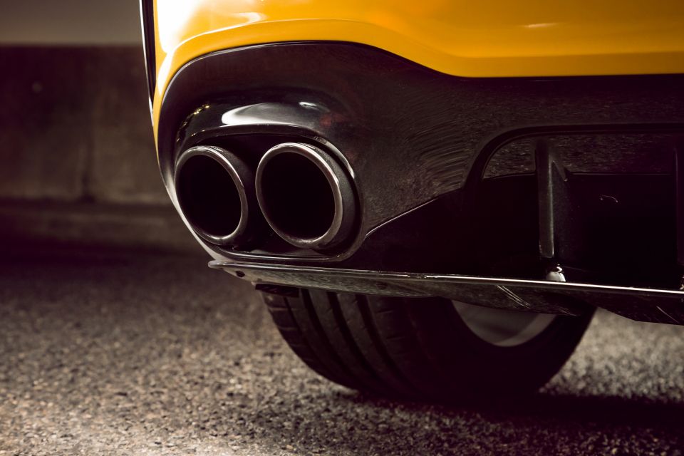 The redesigned RS-specific rear bumper has an integrated diffuser and the RS exhaust system uses two large oval tailpipes.