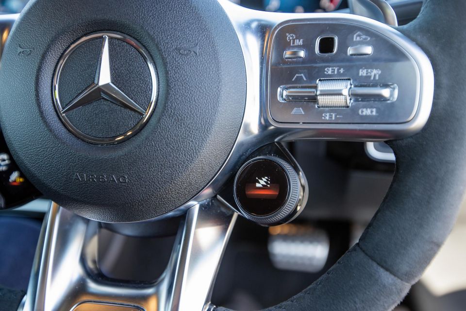 The AMG Performance steering wheel has little physical toggles act as driving-mode adjustment shortcuts.