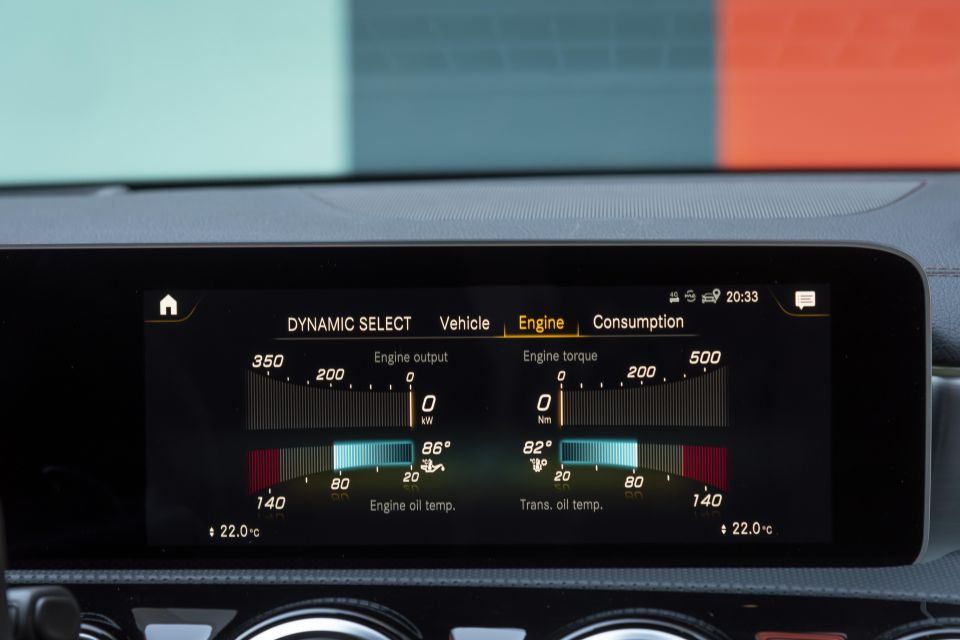 The driver’s instruments come in three AMG design styles, headlined by a Supersport mode with a centralised rev counter, and bar graph rev counter. A head-up display projects onto the windscreen.