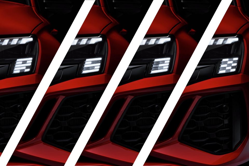Matrix LED headlights have 3 x 5 LED segments and can even form a checkered-flag pattern or spell ‘RS3’, while the rear indicators scroll progressively.