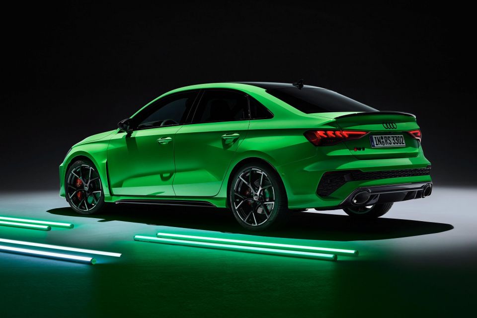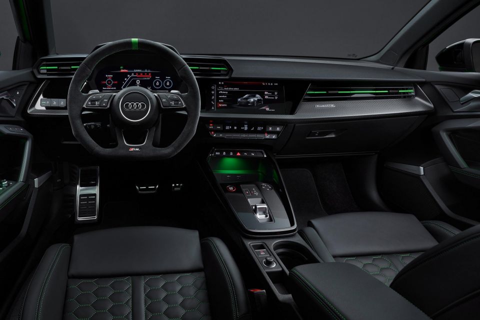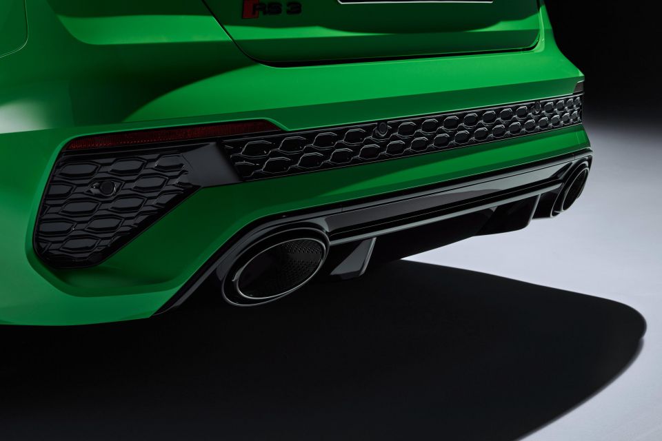 Two unique colours called Kyalami Green and Kemora Grey (both named for circuits) have been created for the RS3. The sedan can be ordered with a contrasting black roof as well.