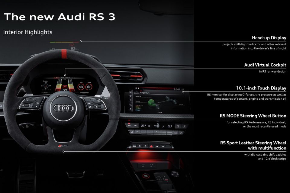 The new RS3 retains the five-cylinder engine with which it has become synonymous. The 2.5-litre TFSI won an ‘International Engine of the Year’ gong nine years running.
