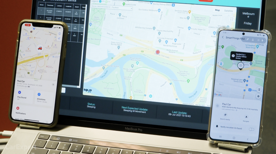Both phones successfully pinpointed the car a few kilometres from our office. It was situated in a densely populated car park near a McDonald’s, suggesting access to numerous relay devices.