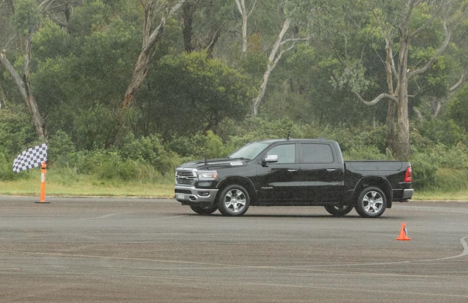 The Ram with its Hemi V8 pulled steadily away from the field but took a second to get its bulk moving, while the Gladiator – despite a petrol typically offering better acceleration than diesel – made a slow getaway.