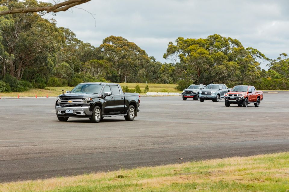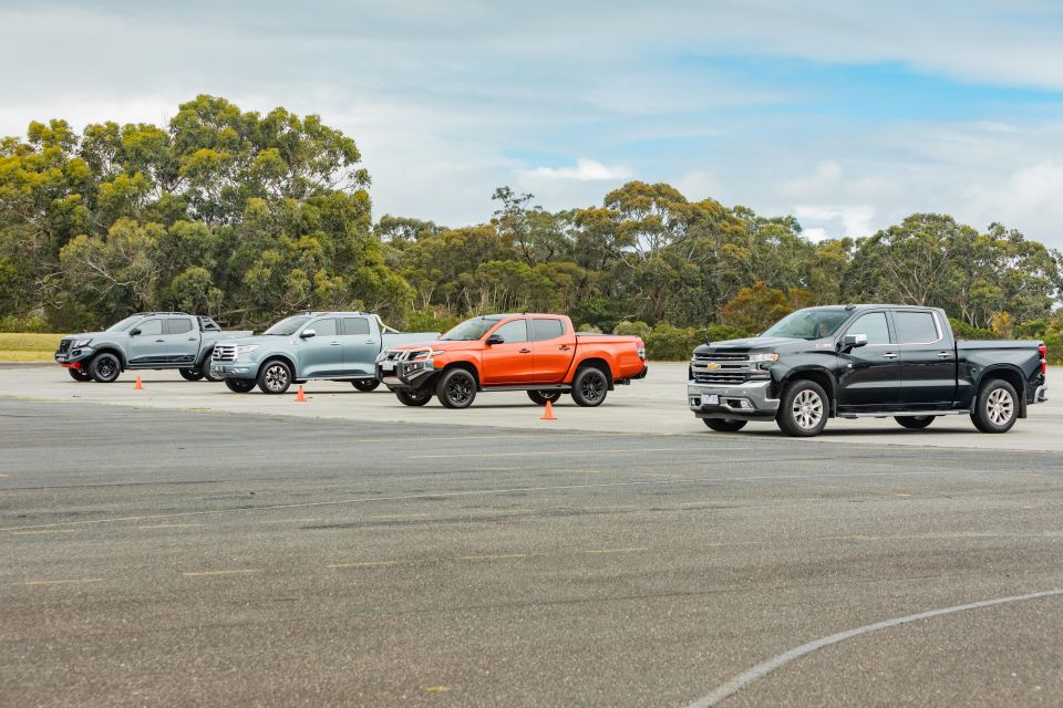 The final trio on test was another eclectic mix comprising the Chevrolet Silverado LTZ with its mighty V8, against a trio of four-cylinder diesels: the Nissan Navara Pro-4X Warrior, Mitsubishi Triton GSR, and GWM Ute Cannon-X.