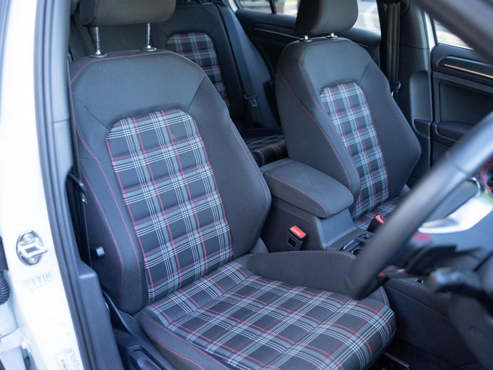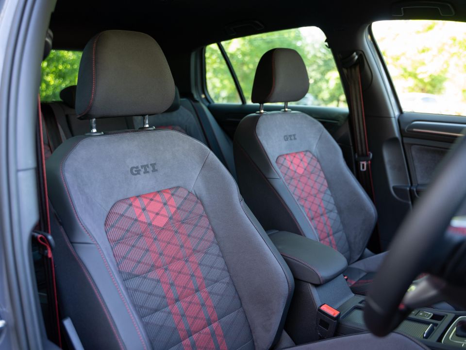 The seats are trimmed in suede/fabric combination with an alternate take on the tartan print, with ‘GTI’ embroidered in the seatback.