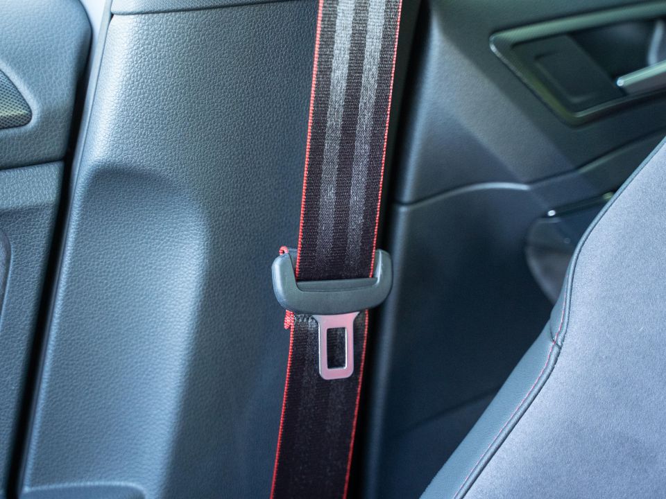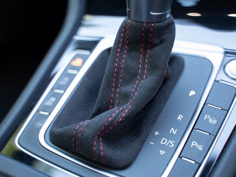 There’s more red pinstriping on the DSG gear selector as well as on the seatbelts, which add a racier vibe, and the gearshift boot is suede.