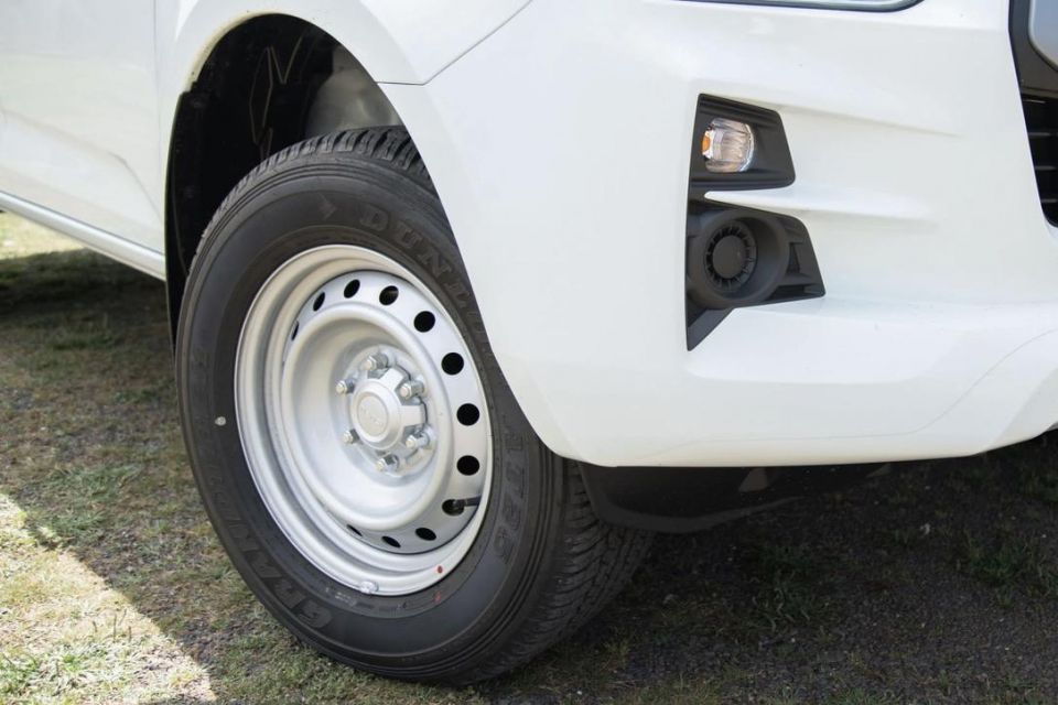On the inside both have fabric seats, workhorse-friendly vinyl floors, rear vents, tilt and telescope steering wheels, 7.0-inch touchscreens, Apple CarPlay (wireless in the Isuzu), Android Auto, digital radio, Bluetooth/USB, reversing cameras, and rain-sensing wipers.