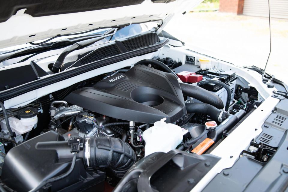The Isuzu uses the latest iteration 3.0-litre four-cylinder turbo-diesel making 140kW of power and 450Nm of torque, mated to a six-speed automatic transmission and a part-time 4×4 system that defaults to RWD and offers both high- and low-range plus a rear diff locker.