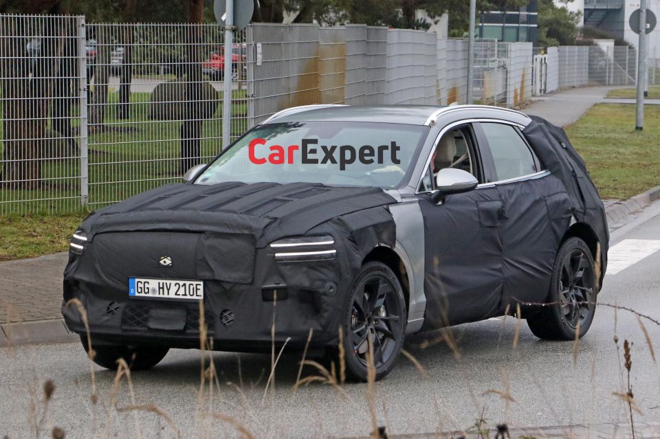 Peer through the camouflage and you can make out Genesis’ signature bi-level lighting elements front and rear, while the sleek, coupe crossover roof line is virtually undisguised.