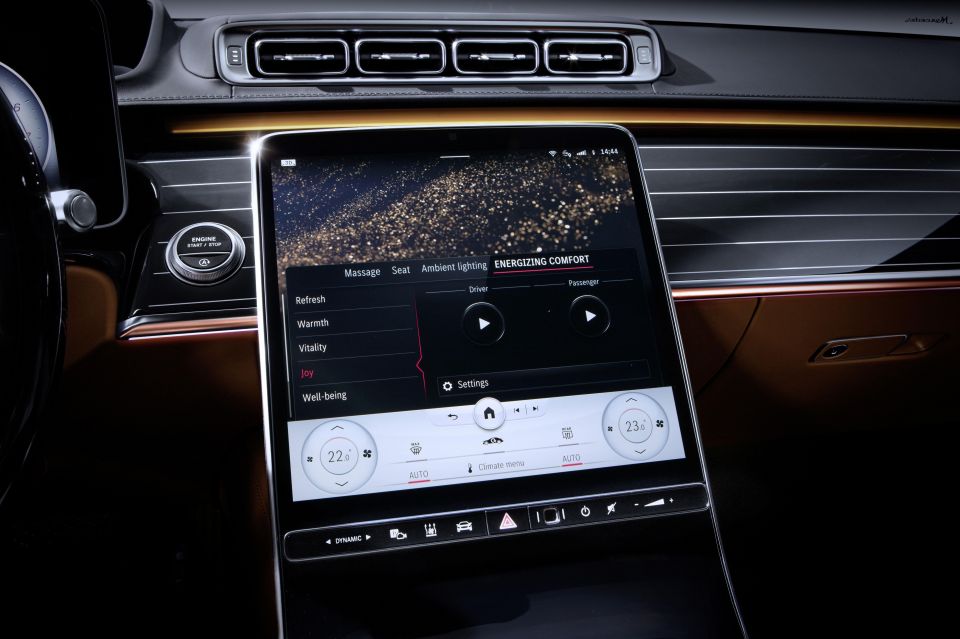 Taking pride of place in the front of the S-Class’s cabin is a new, portrait-oriented 12.8-inch touchscreen that’s allowed Mercedes to remove 27 mechanical switches from the cabin.