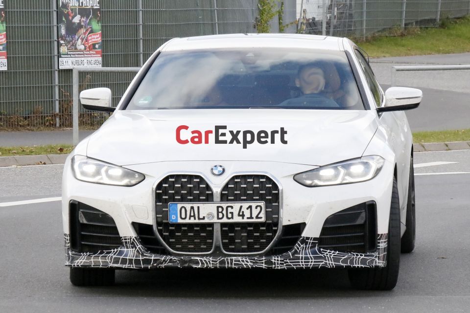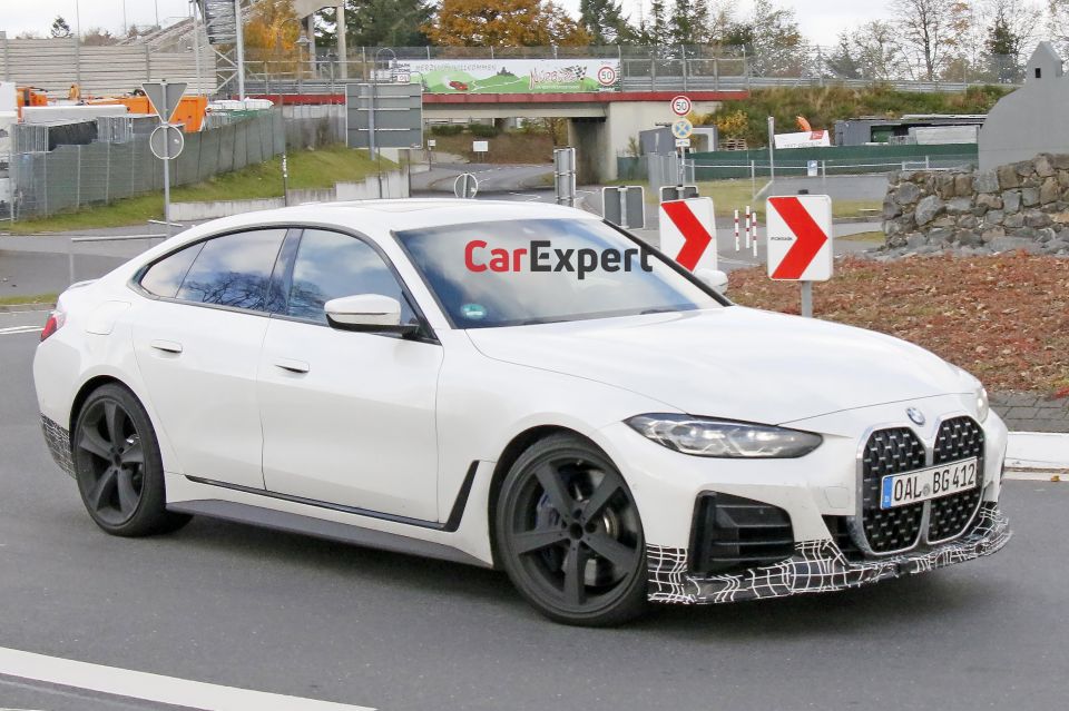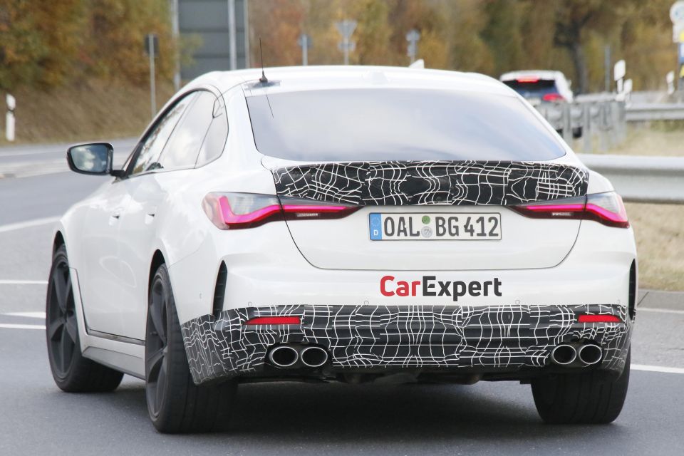 Although its body is mostly unchanged from the regular 4 Series Gran Coupe, the B4 has camouflage on its lower bumpers and air intakes. Both will likely be massaged by Alpina, which has a distinct style for essentially all its cars.
