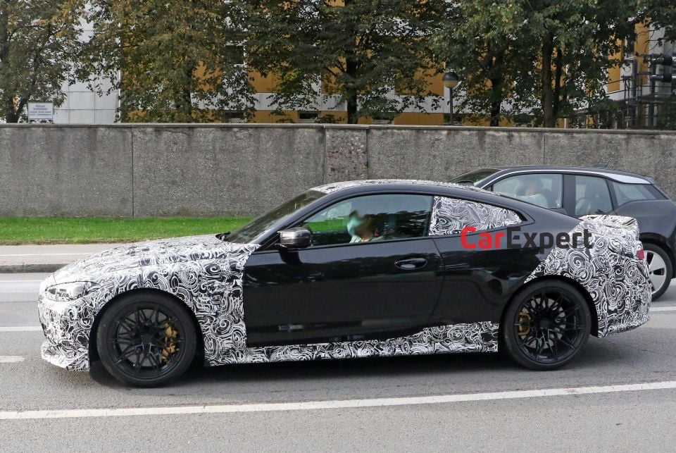 It’s speculated this M4 CSL will have carbon ceramic brakes, given the gold painted brake calipers seen hiding behind the black wheels.