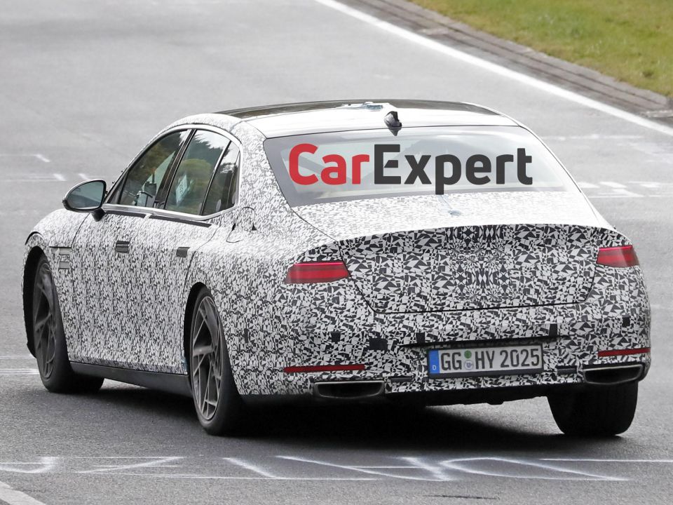 The G90 prototype spied way back in February was clad in a full-body padded covering. This latest car is just wearing disguise tape, so we can see many of its design features more clearly.