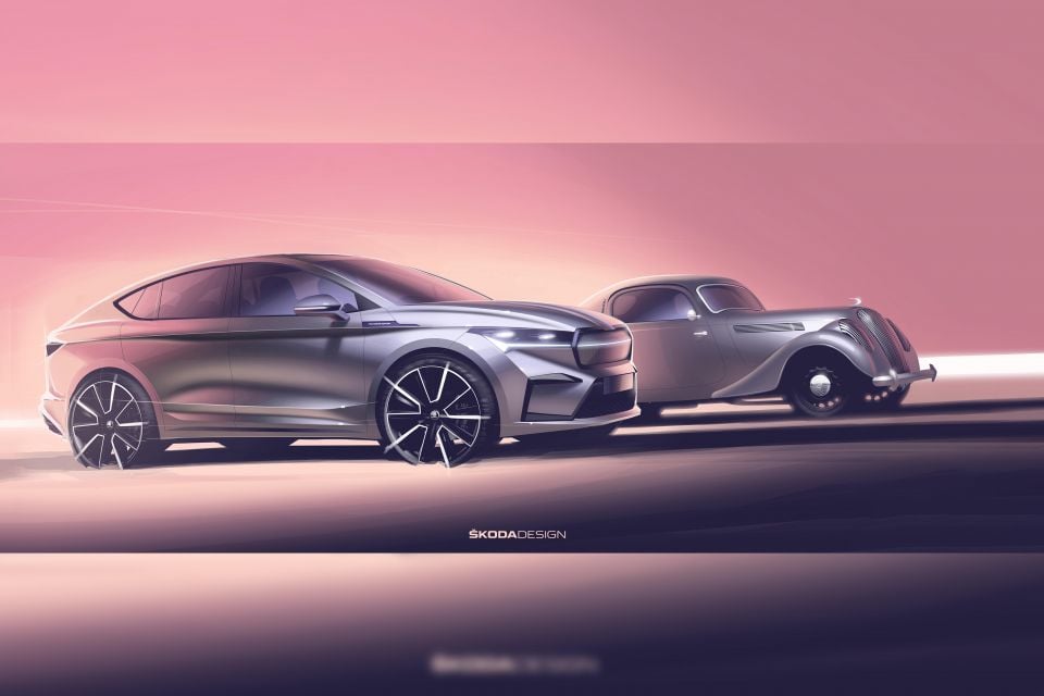 The Czech automaker has previewed the Enyaq Coupe iV with two official design sketches ahead of its official reveal on January 31, 2022 in Prague, Czech Republic.