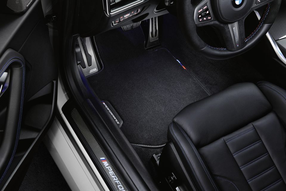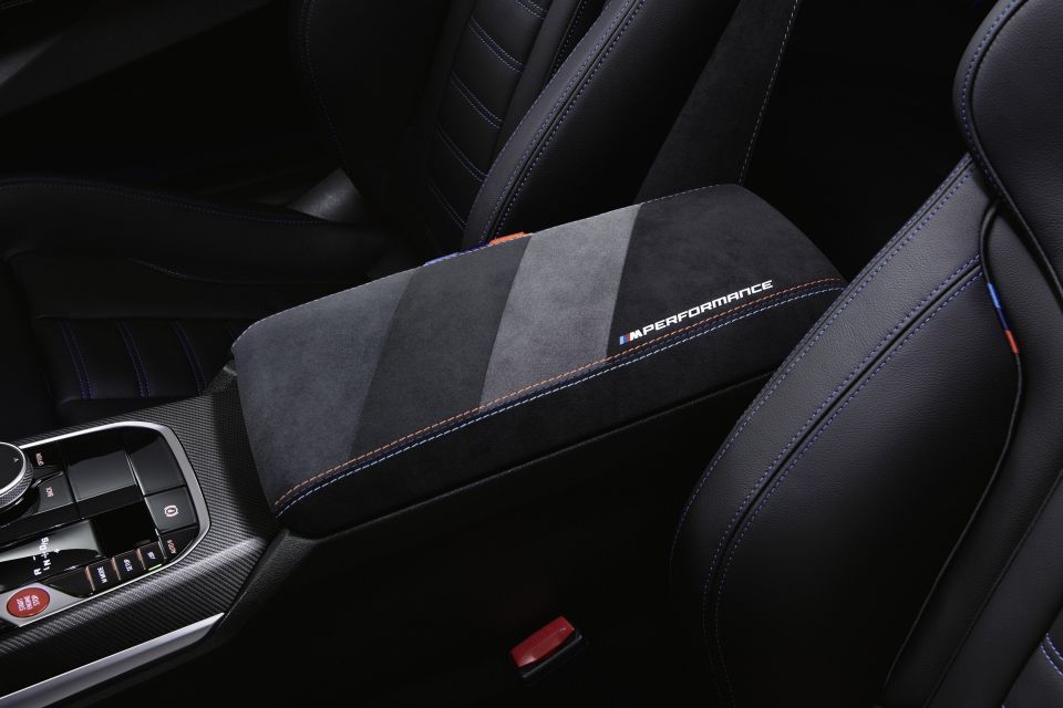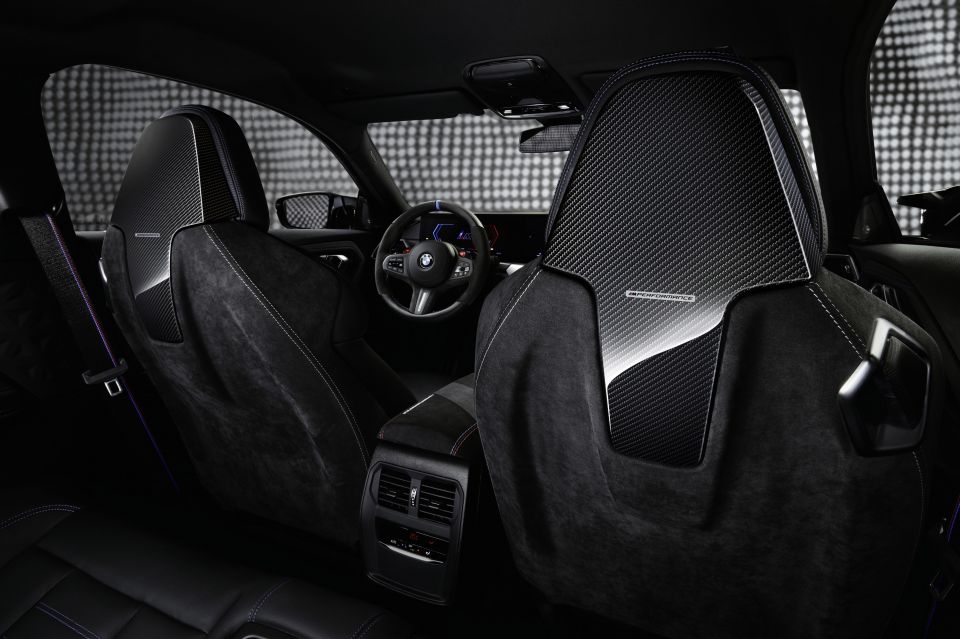 On models equipped with the M Sport seats, there are M Performance backrest covers that are finished in carbon fibre and Alcantara, the head restraint trims are available in a choice of open-pore or high-gloss carbon fibre, and the rest of the rear panel is trimmed in Alcantara.