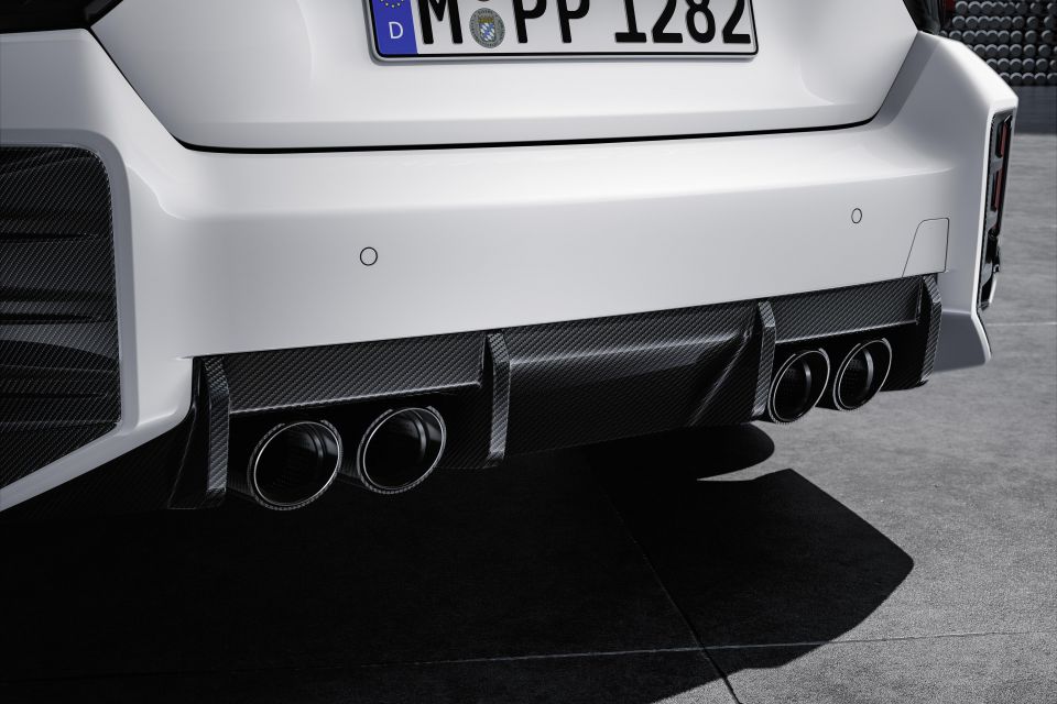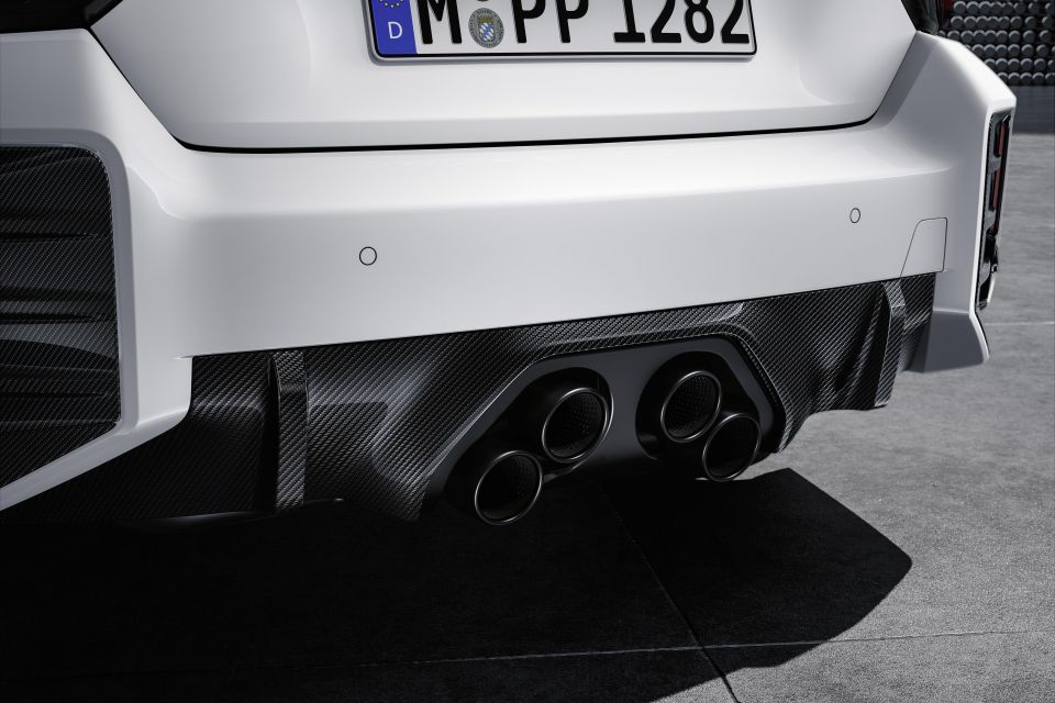 A titanium M Performance silencer system available for the M2 reduces weight by 8kg compared to the standard unit and creates “an unmistakable look and distinct racing-car acoustics”.