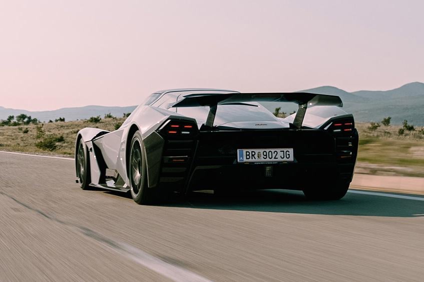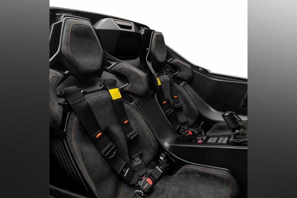 On the outside there’s an electric fighter jet-style canopy with a soft-close function, ‘AirCurtain’ ground effect system, and a carbon rear wing.