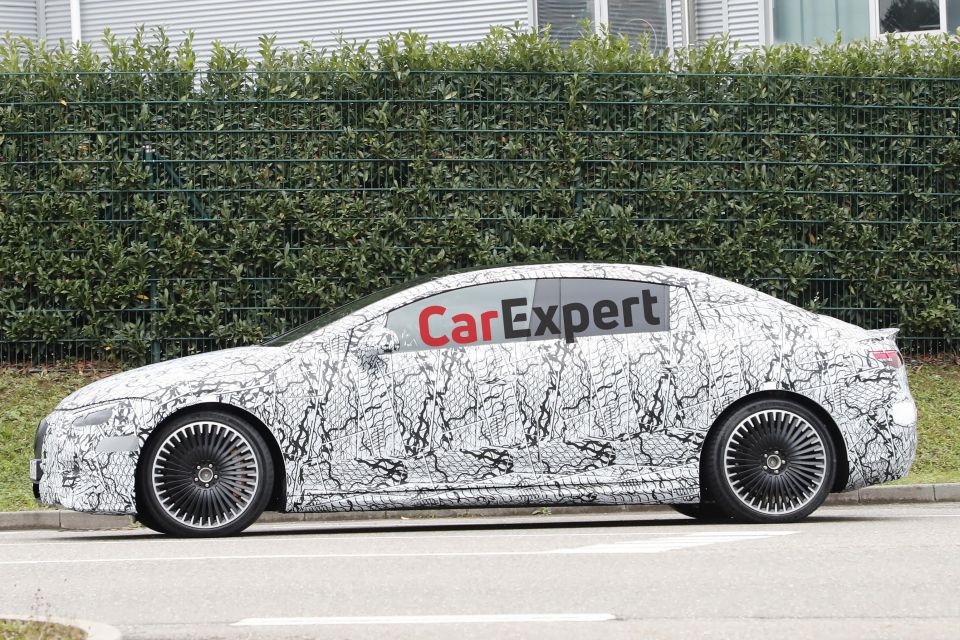 The car pictured has a ducktail rear spoiler like the EQS 53, and was snapped around AMG headquarters in Affalterbach. In other words, it’s not hard to glean what’s hiding beneath that camouflage.