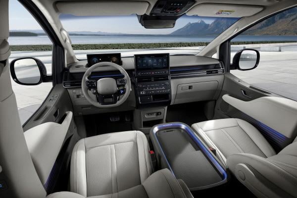 The cabin scores a larger 12.3-inch central touchscreen – up from the 10.25-inch display in current Staria vehicles in Australia – while a revised dashboard layout brings more physical buttons to replace previous touchscreen controls.