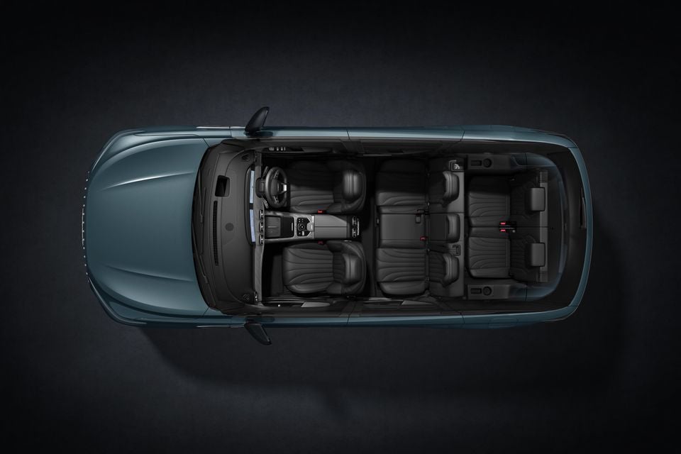 The cabin in overseas models includes power front seats with Nappa leather upholstery across all three rows, along with a leather-wrapped steering wheel.
