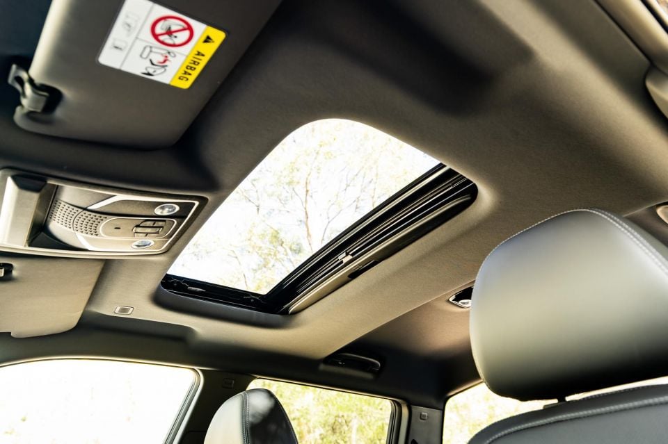 There’s plenty of headroom for all occupants, even with the sunroof, and space for three across the rear bench with rear air vents, a flip-down centre arm rest with cupholders and extra bottle holders in the door pockets.