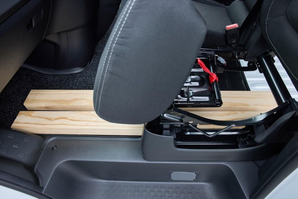 A second hidden compartment is located under the passenger seat on Premium variants, which can also accommodate building materials of up to 2.9 metres in short-wheelbase vans, or up to 3.3 metres on the long-wheelbase – while the seat is in use.