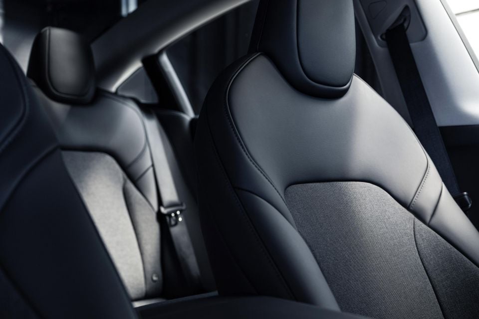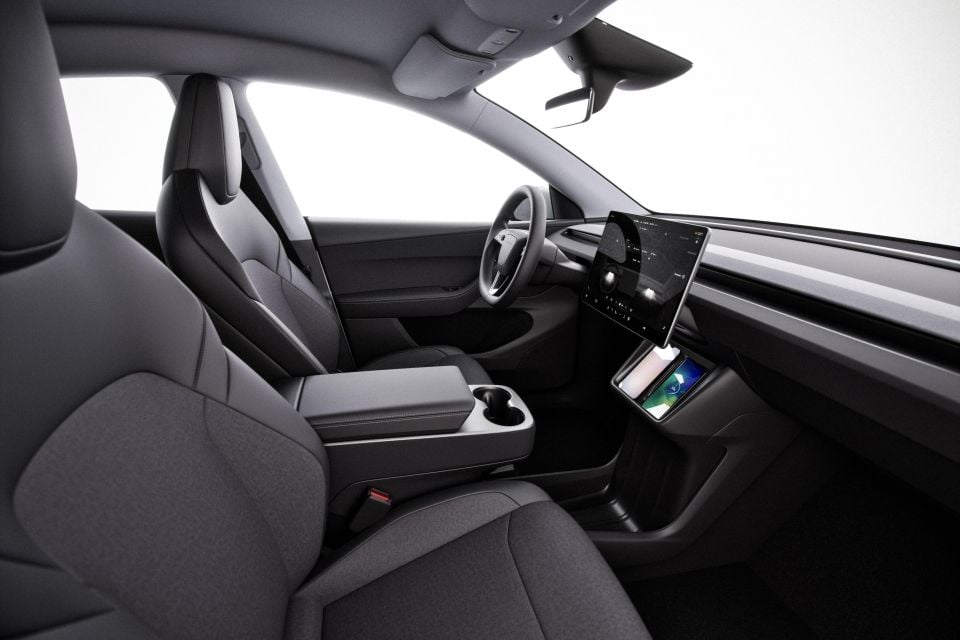 Interior changes are a little more drastic than the Model 3’s too, namely with its redesigned centre console. The textile upholstery is otherwise the same, as is the indicator stalk and rear touchscreen delete, while rear seat heating and front seat ventilation have also been stripped.