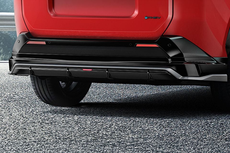 A chunkier front bumper with a larger grille, described as 32mm bigger than standard, is also offered in gloss black and gunmetal finishes to contrast with the GR Sport’s Feverish Red hero colour.