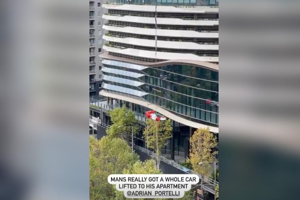 Australian man Adrian Portelli has lifted his $3 million McLaren Senna GTR 57 floors to his high-end apartment in Melbourne.