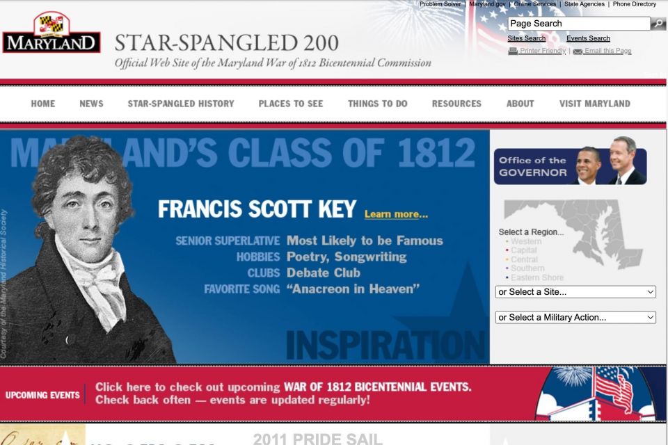 The original site provided visitors with tourist information in Maryland, and later highlighted the Star-Spangled Banner National Historic Trail.