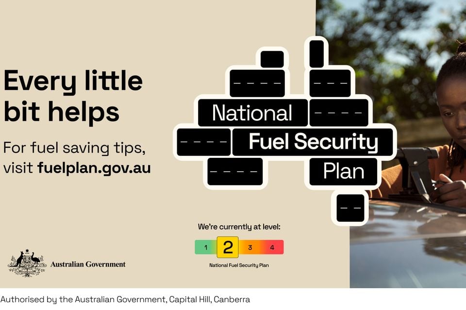 Dubbed 'Every little bit helps', the campaign will see ads appear on television, radio and on billboards and posters, reminding Australians that we’re currently at level two of the four-level National Fuel Security Plan.