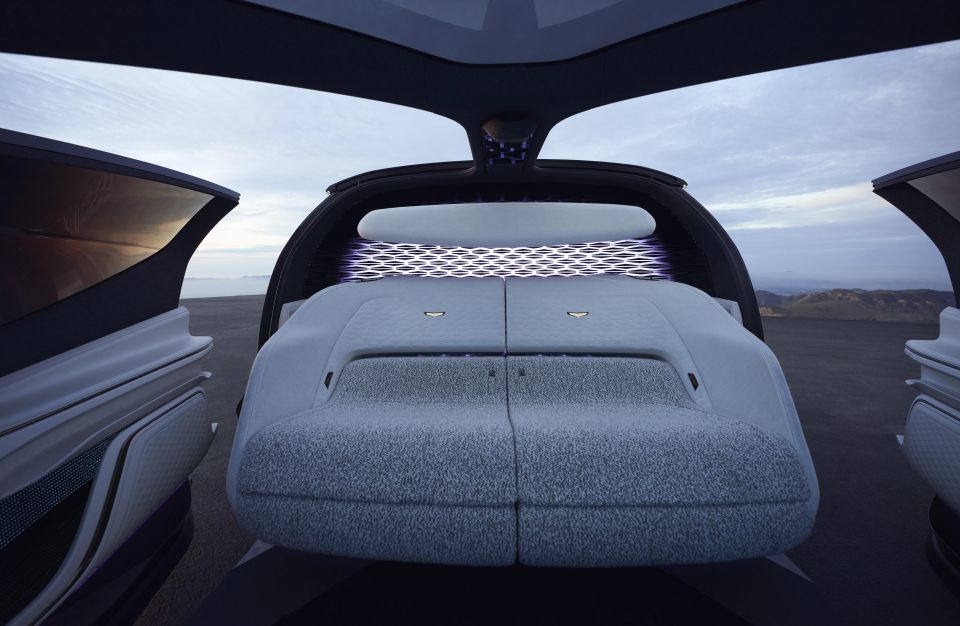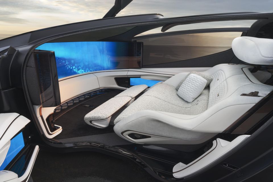 You can sit back in the couch-like front bench and take in the panoramic SMD LED display, which Cadillac says offers a choice of “Augmented Reality Engagement, Entertainment and Wellness Recovery themes”.