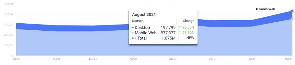 *SimilarWeb Australian visitor numbers for August 2021 at 1.075million.