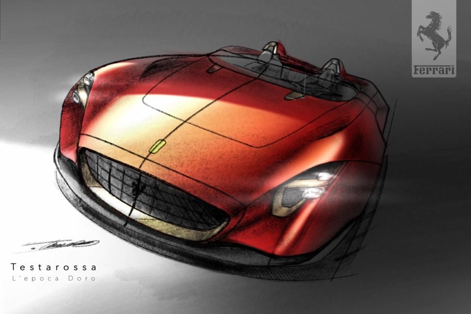The concept car is a modern reinterpretation of the classic Ferrari 250 TestaRossa (1957-1961), more specifically the Scaglietti-designed iteration, in the form of a front-engined open-top spyder with a two-seater cabin and exotic styling.