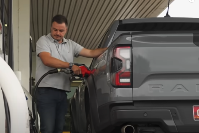 We then used the high-speed bowl at the proving ground to run the Raptor down to empty, headed back to the petrol station, and fuelled up with 95 RON and repeated the process.