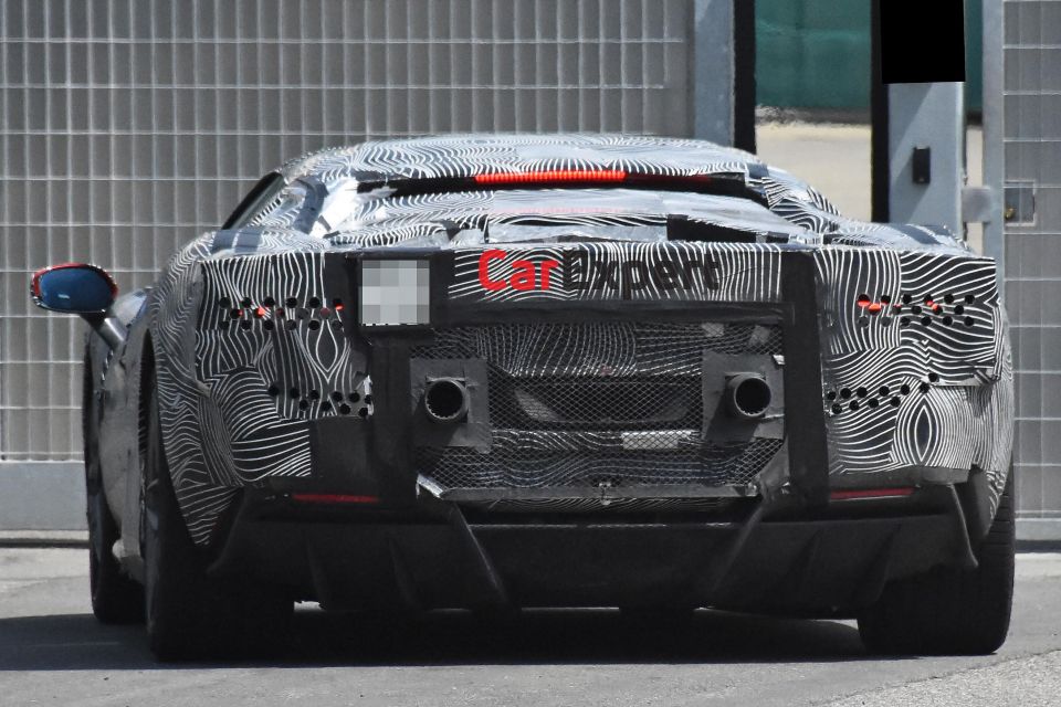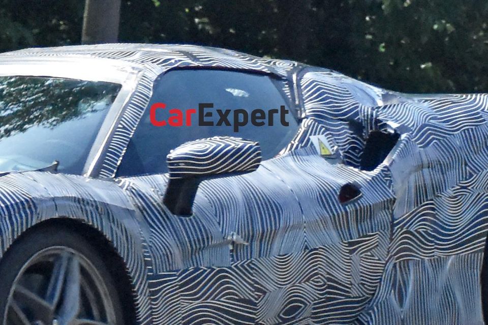 There’s what appears to be a prominent air intake set high on the rear arches, a trademark of baby Ferrari supercars since the 360, and what we can ascertain of the rear suggests it will blend an F8-style diffuser with a more upright and SF90-ish profile.