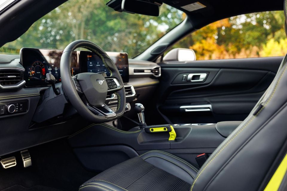 It borrows parts from higher up the Mustang food chain, including the GT’s front bumper, steering rack, and 600W cooling fan.