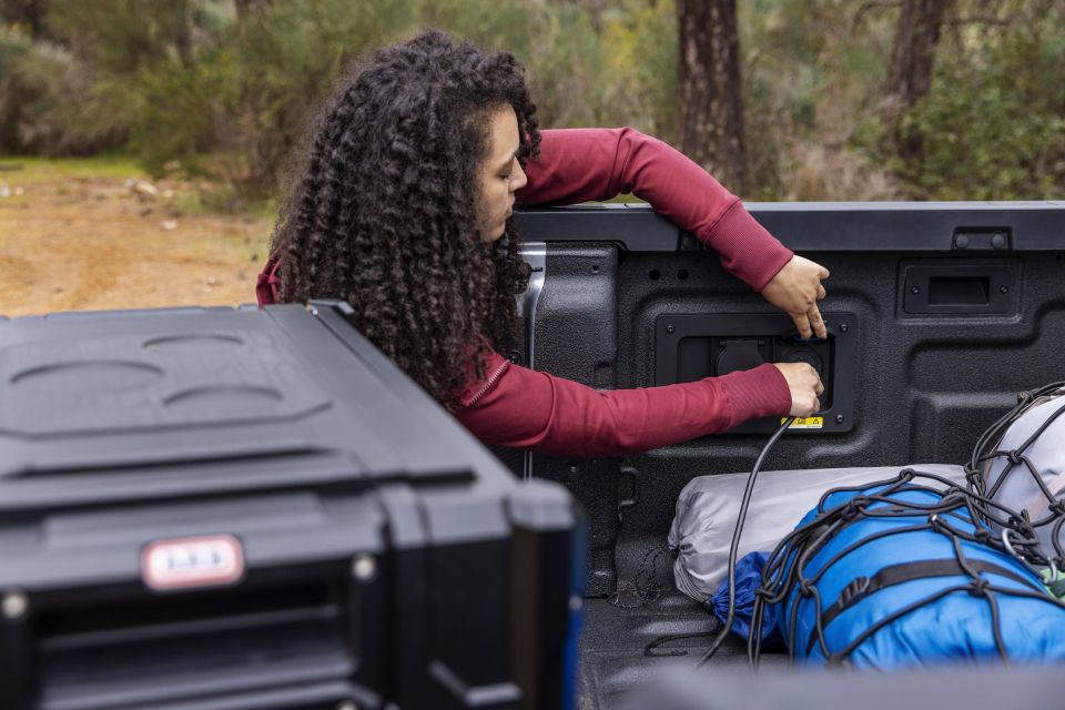 Available features include an exterior zone lighting system that can be controlled through the touchscreen or the FordPass smartphone app, a 400W inverter with outlet in the tray, and an integrated side step behind the rear wheels.