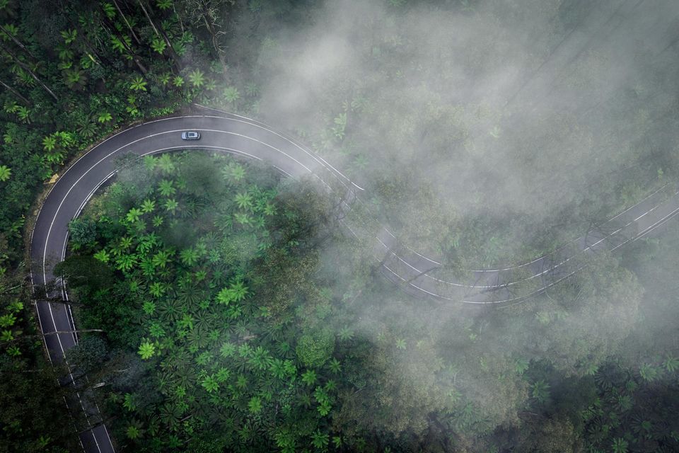 Through Gippsland’s rolling hills: Plenty of opportunities for the car to regenerate energy on descents, storing power for later sections.