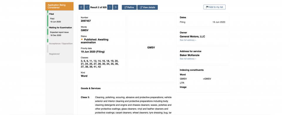 The trademark applications made by General Motors and Laser Cleaning Machines Australia Pty Ltd haven’t yet been formalised, with applications awaiting examination and expecting formal reporting by November 2020.