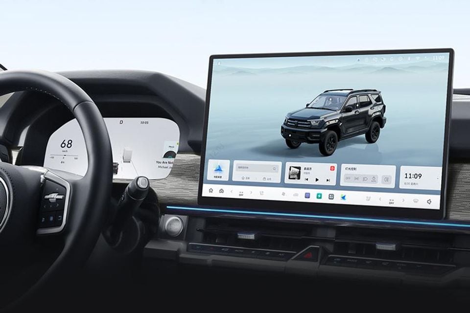 Some Tank 400s also come with a 15.6-inch rear entertainment screen that folds out of the roof, replacing the panoramic sunroof, plus a night vision system.