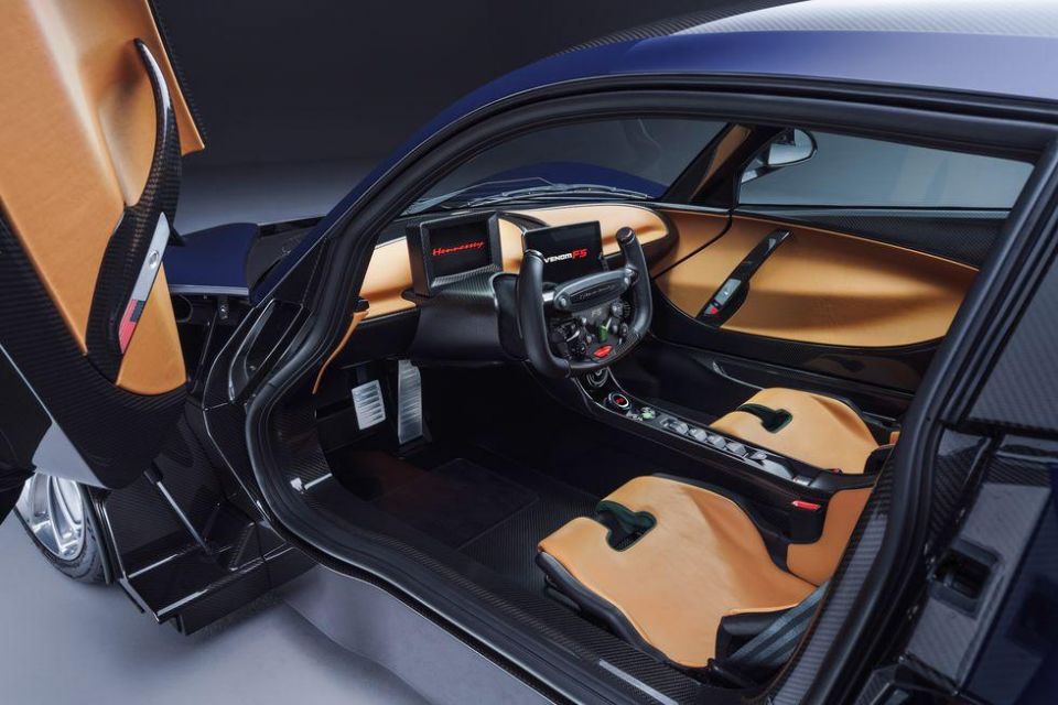 Measuring 4666mm long and 1971mm wide, the Venom F5 has a drag coefficient of 0.39. The car’s passive aerodynamics have been tuned so there’s sufficient downforce at high speeds.
