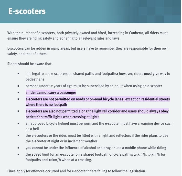 ACT, much like QLD have safety protocols in place for safely riding your e-scooter.
