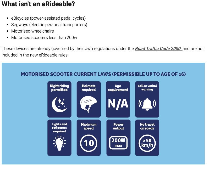 Current legislation allows the use of electric scooters in public so long as they are designed for use by a single person only and fit within the prescribed dimensions (set out below).